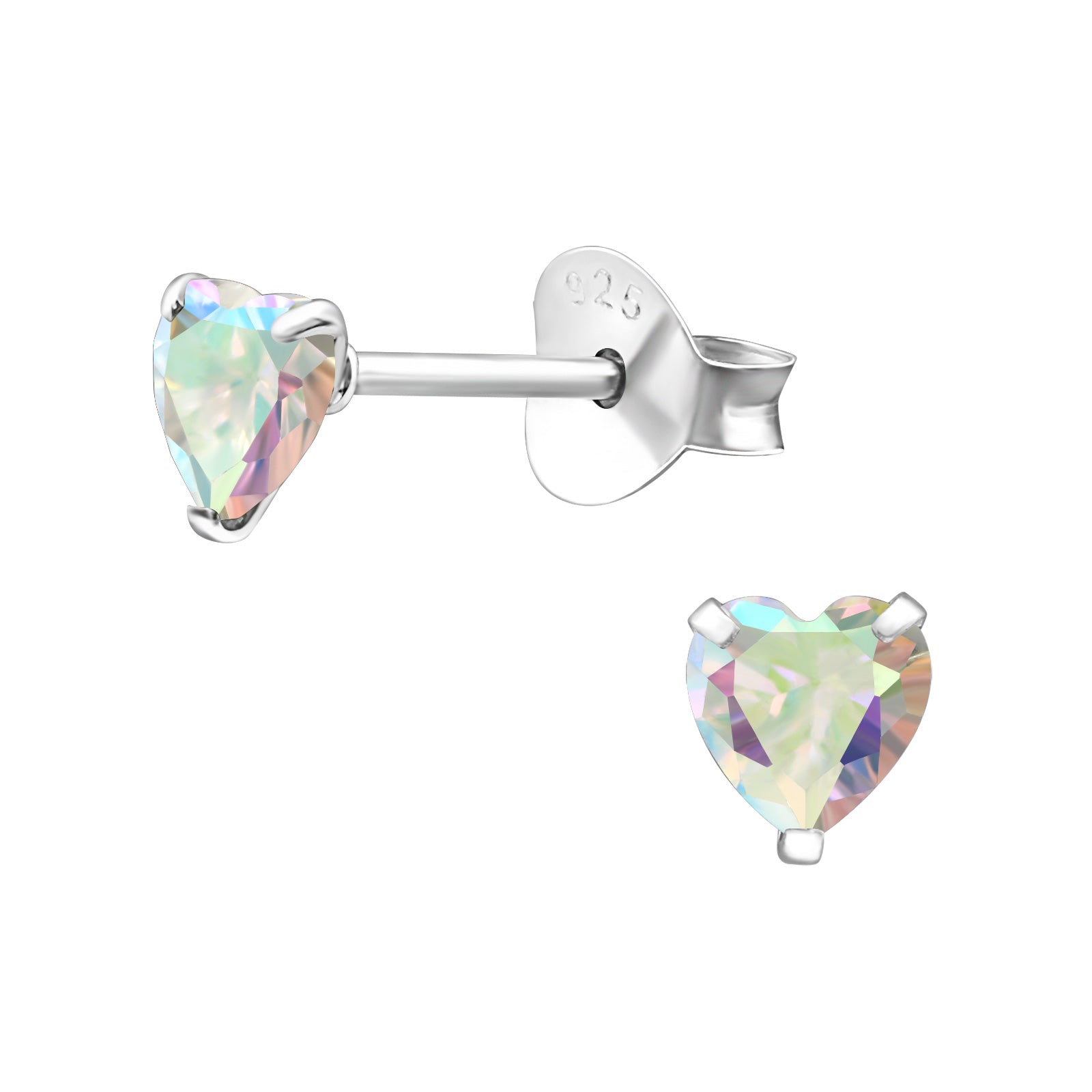 Iridescent Heart Crystal Mini Silver Stud Earrings