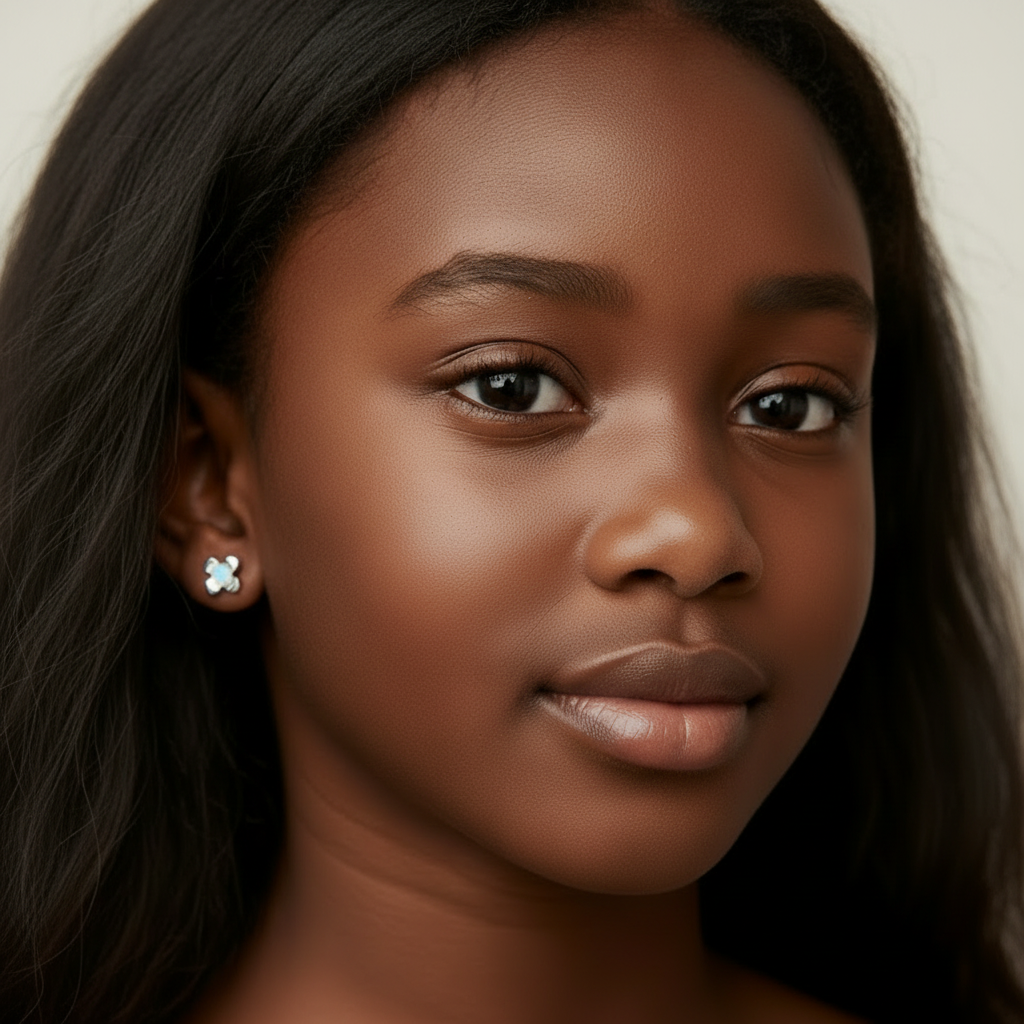 These cute silver flower-shaped stud earrings, featuring a beautiful lab-created opal stone at the center, effortlessly adds a touch of charm to any outfit, offering a blend of elegance and fun.